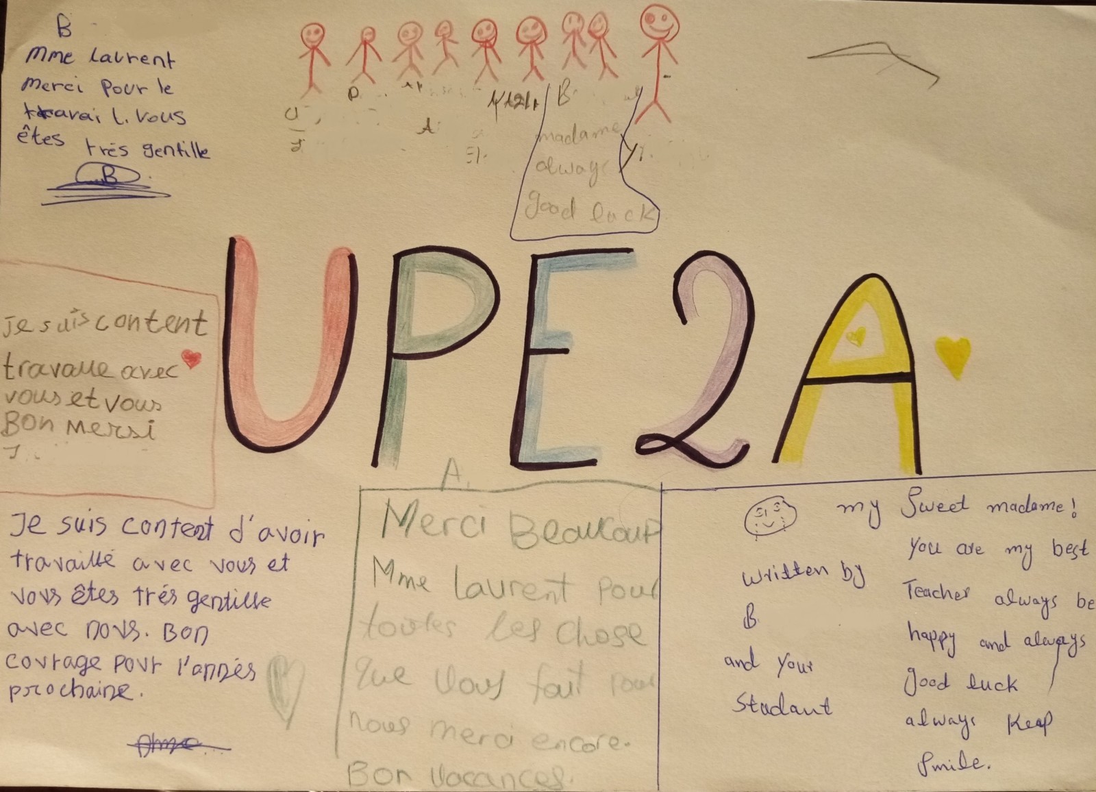 Ces connaissances ajoutées à un diplôme d'université pour l'enseignement du Français Langue Etrangère (FLE) m'ont amenée à enseigner en UPE2A. C'est une classe en collège ou lycée dédiée aux élèves nouvellement arrivés en France et qui a pour but leur intégration après 10 mois en classe "normale" (avec les élèves français). 10 mois ! Si peu de temps pour se familiariser avec un nouveau système scolaire, une nouvelle langue, une nouvelle culture !